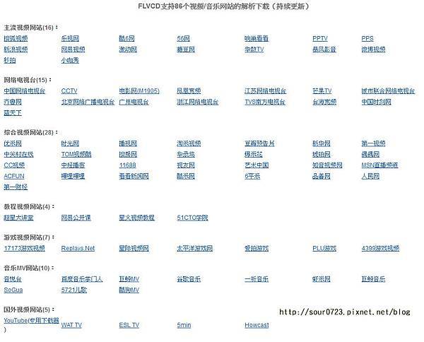 FLVCD可支援的網站目前有86個,以前支援Youtube、愛奇藝網站下載,現已不支援。