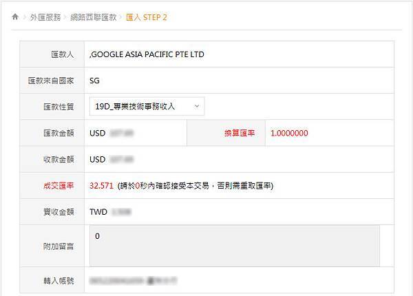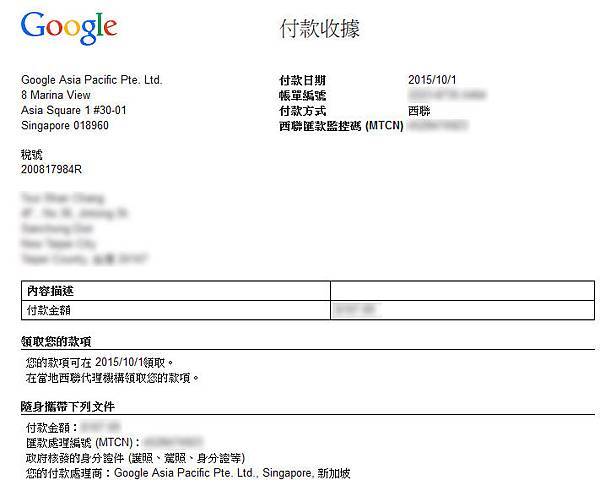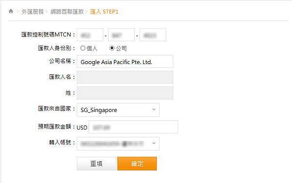 公司名稱:填寫「Google Asia Pacific Pte. Ltd.」