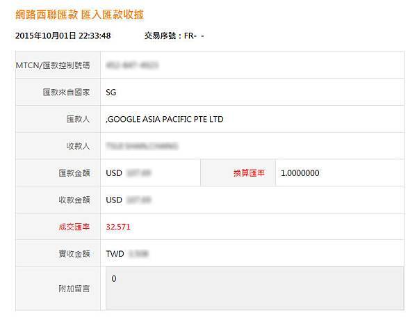 匯款控制號碼(MTCN):輸入款項的MTCN碼