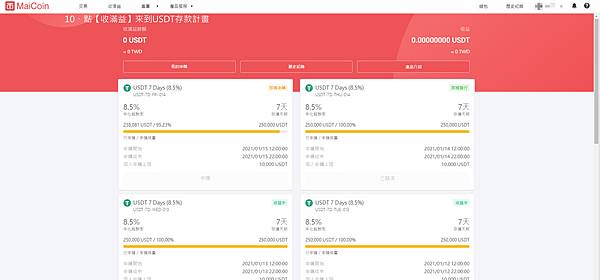 還推出了USDT存款計畫(存七天滿七天後可領,年化報酬8.5%)